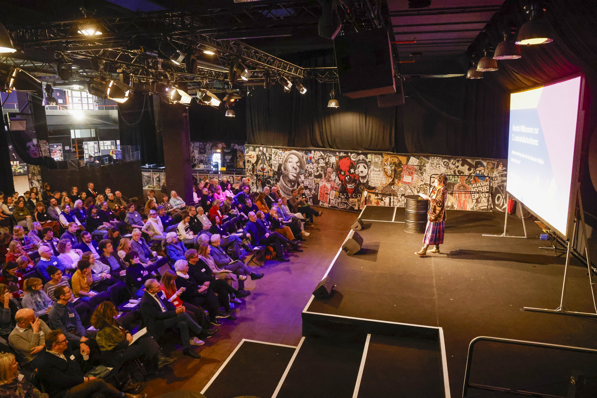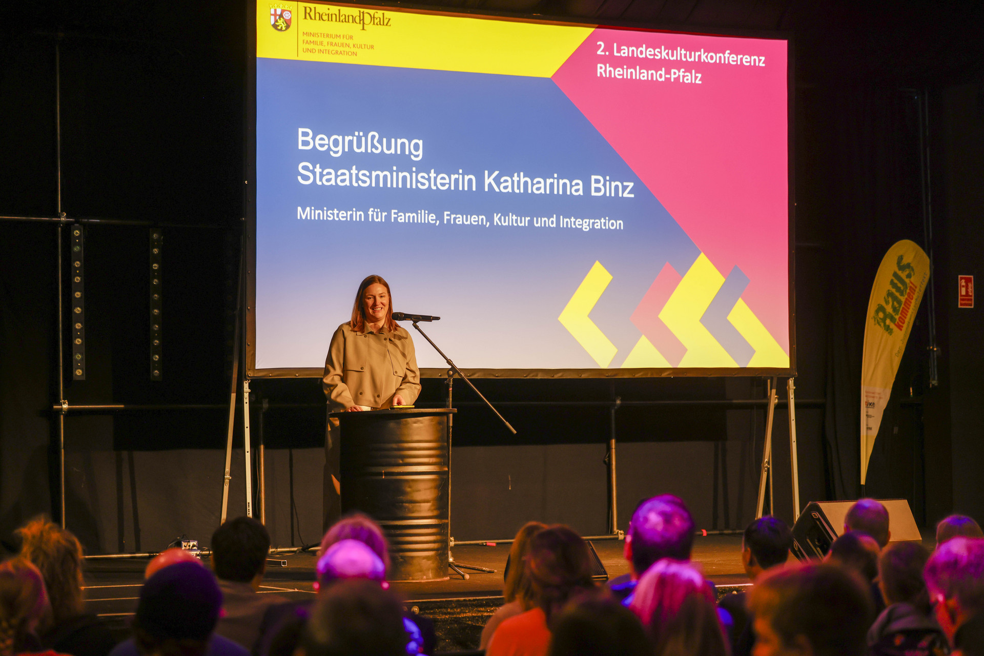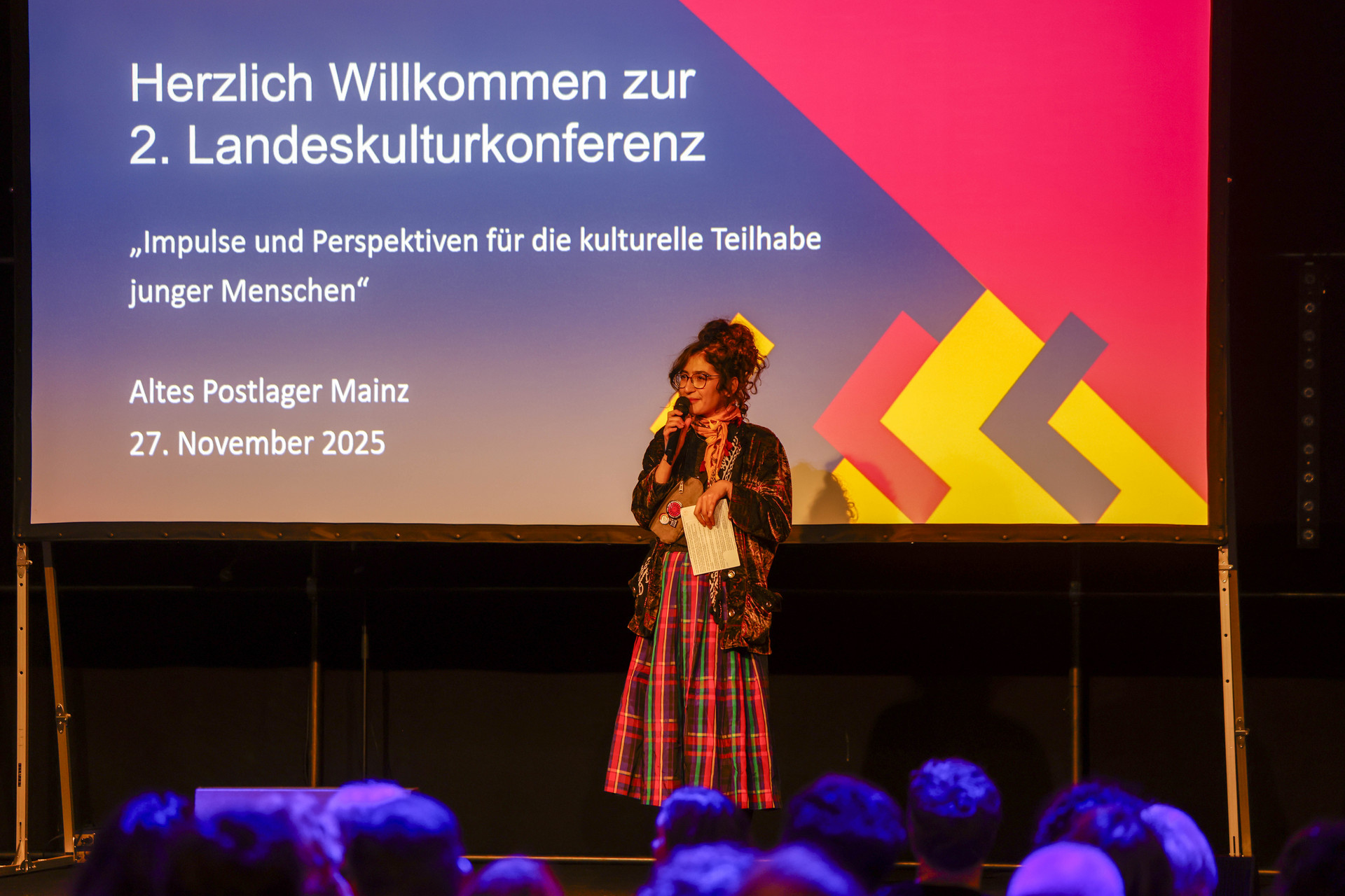 Über 300 Teilnehmende aus Kulturinstitutionen, der Freien Szene, Verwaltung, Politik sowie zahlreiche Jugendliche kamen am 27. November 2025 zur zweiten Landeskulturkonferenz Rheinland-Pfalz im Alten Postlager Mainz zusammen. Kulturministerin Katharina Binz eröffnete die Konferenz und nahm anschließend an der Podiumsdiskussion „Kulturelle Teilhabe junger Menschen stärken – Perspektiven aus Politik, Praxis und Forschung“ teil.