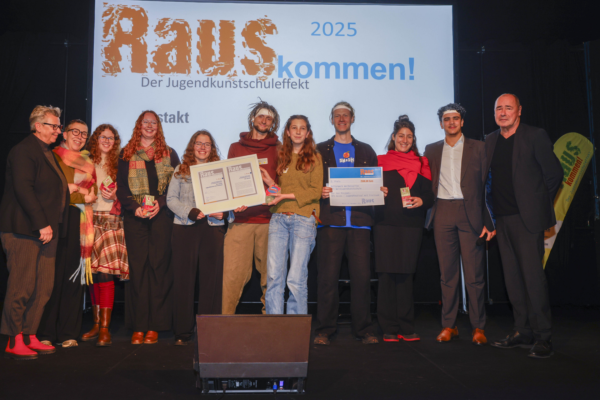 Im Zuge der Veranstaltung fand auch die Preisverleihung des Bundeswettbewerbs „Rauskommen! Der Jugendkunstschuleffekt“ statt. Der vom Bundesministerium für Bildung, Familie, Senioren, Frauen und Jugend geförderte Wettbewerb wird vom Bundesverband der Jugendkunstschulen und Kulturpädagogischen Einrichtungen e.V. (bjke) durchgeführt und zeichnet Projekte aus, die kulturelle Teilhabe junger Menschen in besonderer Weise ermöglichen. Das Kulturwerk Weißenseifen mit Waldjugendkunstschule erhält den 2. Platz für „Art moves“ aus Rheinland-Pfalz – ein besonderes Signal für die lebendige und qualitätsvolle Arbeit im Bereich kultureller Bildung im Land.